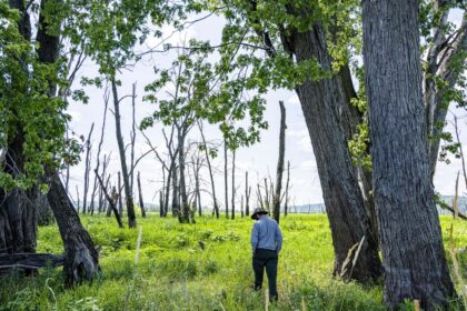 USA: Volunteers work to collect and plant acorns to save struggling forests along the Mississippi River