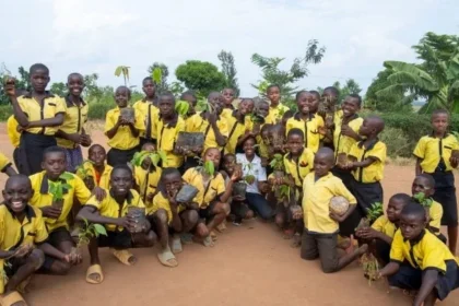 by ThinkLandscape Gathered in the orchard near the Kayovu Primary School yard, young…
